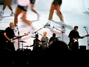 That said, if you could screen out the videos, as I think a lot of people tried to do, the music was highly entertaining, as the boys were in top form, delivering the songs with the tautness and precision that is their trademark. They had really done their homework relearning these songs, which appear deceptively simple, but have some structural oddities, in particular 106 Beats That, which Bruce, whilst learning it, referred to as "Wire's Rosetta Stone". 106 beats Bruce? Not quite! He thinks these songs have far too many chords anyway.