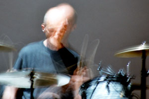 Wire hit the ground running, barely stopping between songs, desperate to keep the momentum up, as they reached escape velocity, burning like a comet. "One thing Wire do really well live is excel at power," Colin said in a recent interview, and remarked how there " may be some subtlety in the interplay," but they generally "go for the jugular". Colin and Bruce jokingly refer to the current material as "heavy metal dancefloor". Dance methodology. Punk-rock thinking. Not punk rock, though, because, as Colin says, "punk rock as a term is completely meaningless." Wire played with a rage and intensity, as though their lives depended on it. In action delivers: the guitars on Read and Burn were particularly abrasive, sizzling like water on a hotplate. One minor criticism, and it's not even to do with the playing, but the vocals on Agfers of Kodack were very poorly mixed for most of the song, which was a shame, because it's Graham's only vocal contribution to the new material. Robert's beloved old kit had been replaced with an electronic one—reconciliation between labour and technology? Agrarian meets industrial? Sinews and wires pumping in parallel, he pummelled vigorously, providing the steady state heartbeat, greatly accelerated as it is for this material. As Colin said in another interview, Robert's the absolute bedrock on which the material rests. Or, a beat farmer, as Ian Penman once called him.